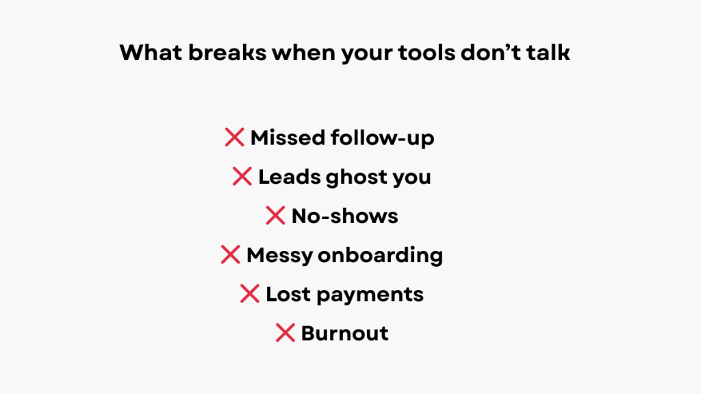 Integrations break. Leads get lost between systems. Reporting becomes difficult.