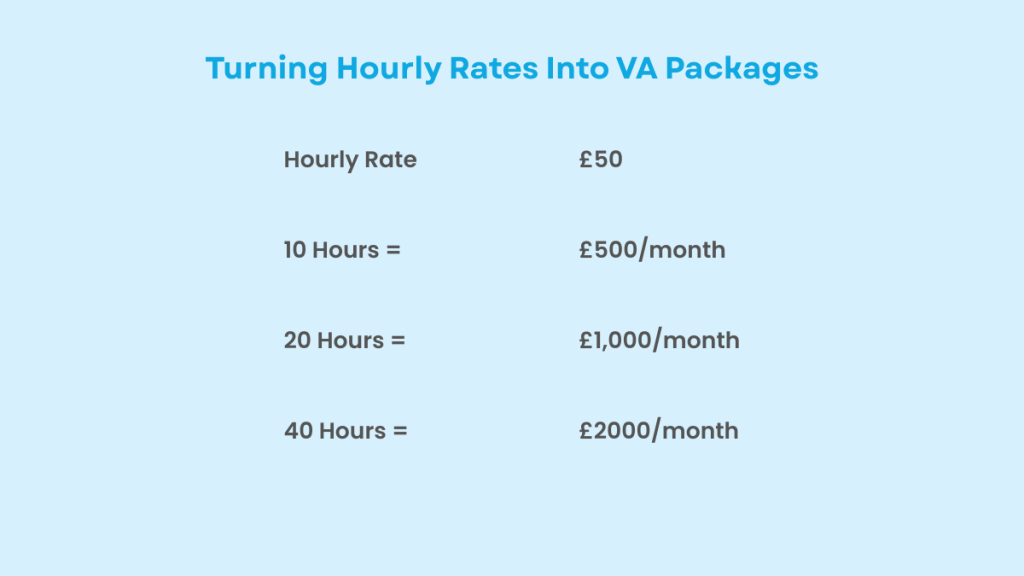 If your target rate is £50 per hour, a ten-hour package becomes £500 and a twenty-hour package becomes £1,000. The numbers stay consistent and pricing decisions become straightforward.